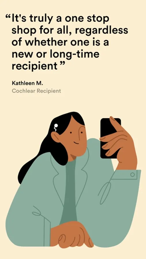 • Exclusive to Cochlear customers, login is easy with your existing Cochlear account. Don’t have a Cochlear account? You can sign up via the app.