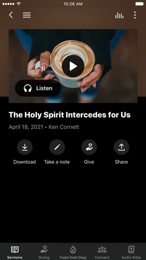 This app will help you stay connected with the day-to-day life of our church. With this app you can: watch or listen to past messages; stay up to date with push notifications; share your favorite messages via Twitter, Facebook, or email; and download messages for offline listening. Our motto is Come as you are. Dont leave as you came.