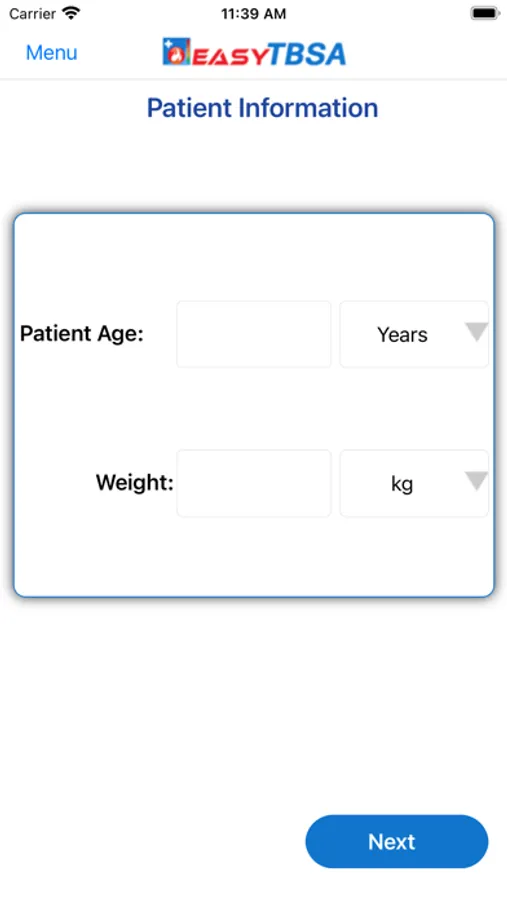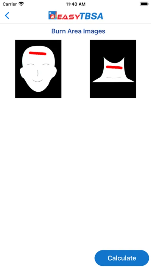 EasyTBSA requires the entry of a patient’s age and weight and the shading of burned areas on representative body part maps.