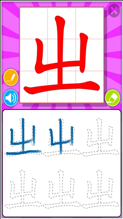 In writing section, user can learn the stroke order and pronunciation of phonetic symbols, and immediately practice writing in the practice area.