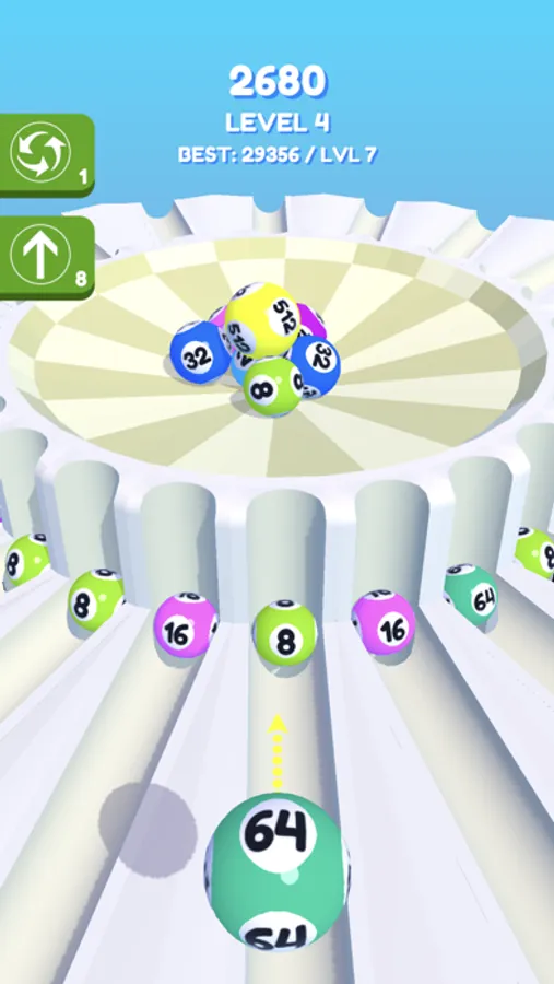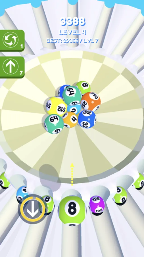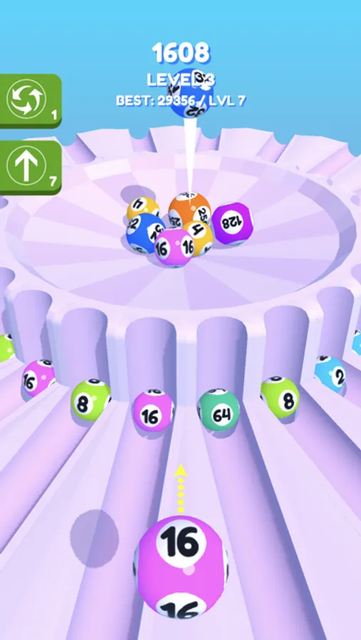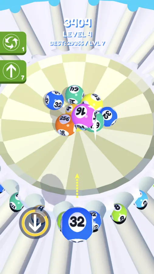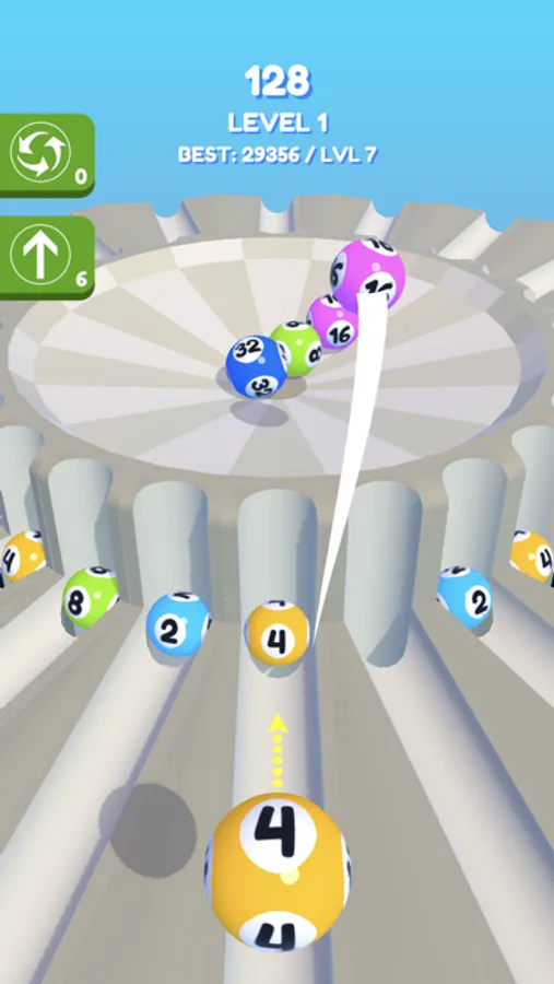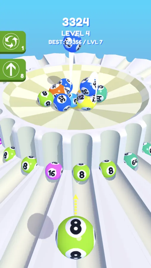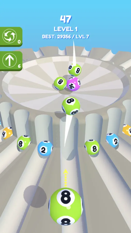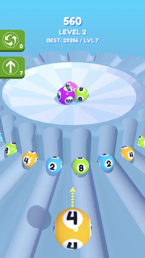 Tap to shoot the balls! Hit balls of the same color to merge them.