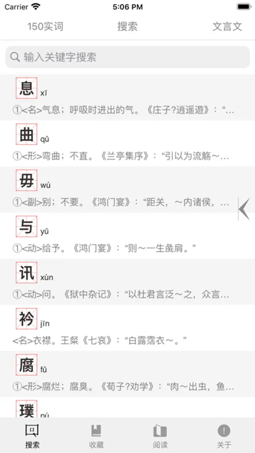 改字典紧扣初中高中大学文言文科目内容,是您学习文言文的必备利器,同时还有文言文的阅读内容,对于中国传统文化的爱好者,也不失为一个好用工具