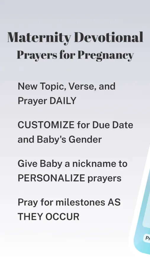 Congratulations on your new little miracle! Pregnancy can be an exciting, and sometimes worrying, time for mothers. Maternity Devotional: Prayers for Pregnancy provides you with a short daily devotional including a new topic every day with a corresponding Bible verse and prayer. Each day’s devotional is personalized with Baby’s gender, if you know it, and a nickname for your child that you have entered.