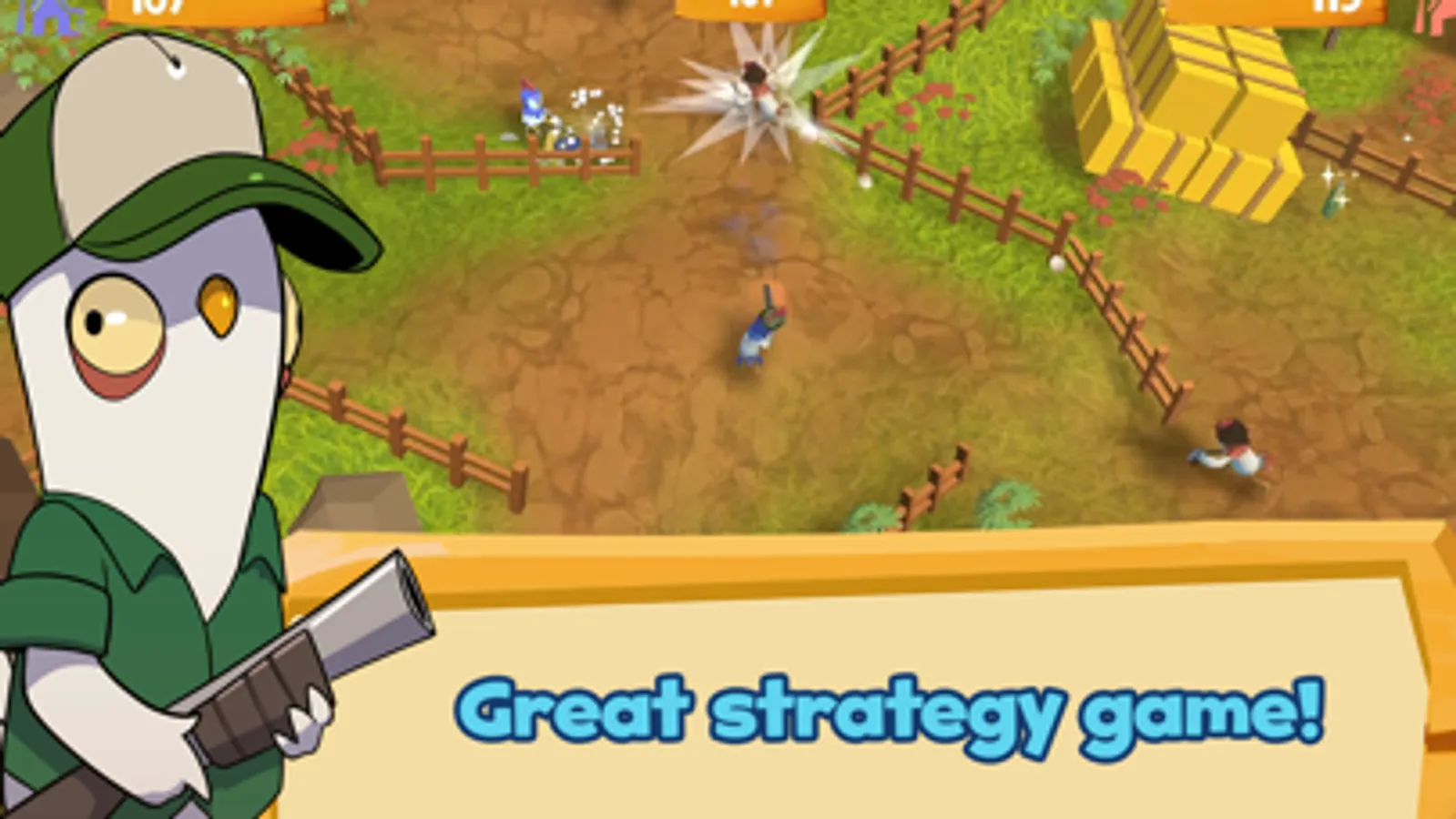 Chubby Chickens is a 5x5 multiplayer mayhem split between two teams of chickens. The core gameplay revolves around kidnapping and keeping both The Golden Eggs Chicken on your side of the map. Something like Capture the Flag, while the Flag is a chicken that you need to feed. The more you feed, the heavier she is and the harder is to take her to places.