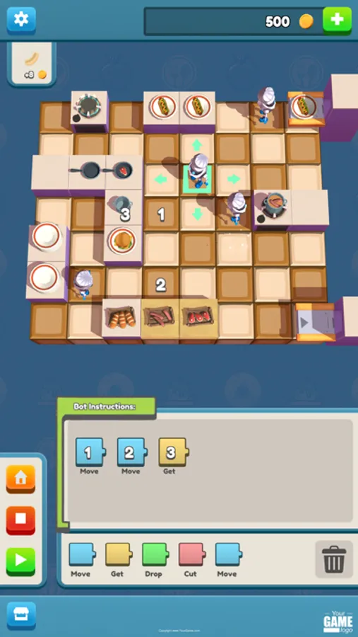 Use simple commands to program cute bot to cook delicious dishes. Those tireless cute machines are always preparing food with a smile on their face. You will receive income from your restaurants while you are idle. But be always clever, little bugs may produce wrong dishes.