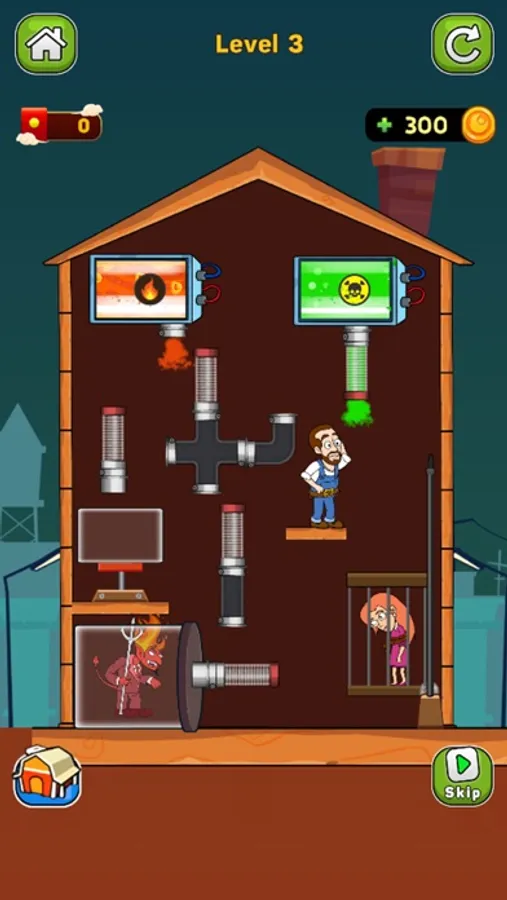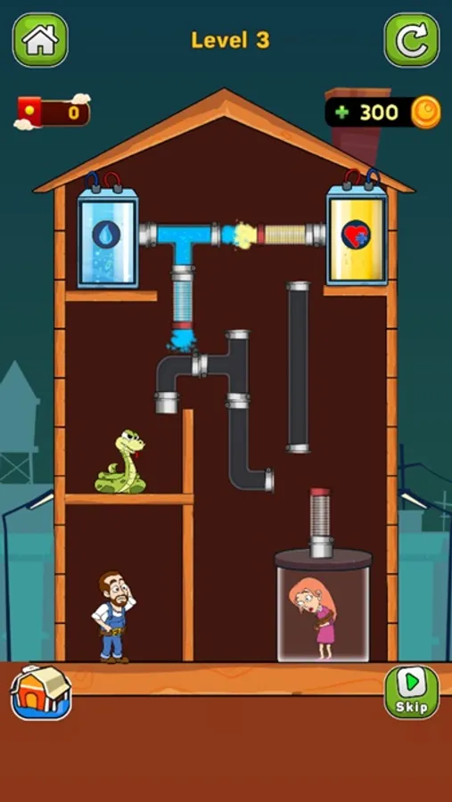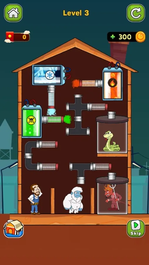 Solve puzzles and rescue the hero, collect all the treasures, kill monsters and save the princess. Connect the pipes in order to destroy your enemies by pulling lava and poisonous gas into their puzzle units.