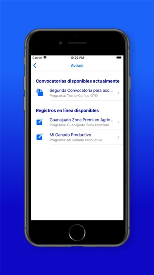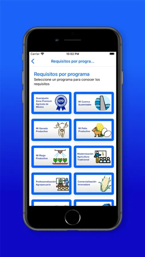 Con la aplicación, podrá saber los requisitos que se deben cumplir para acceder a un apoyo por parte de Gobierno de Estado de Guanajuato, a través de los programas de la Secretaría de Desarrollo Agroalimentario y Rural.