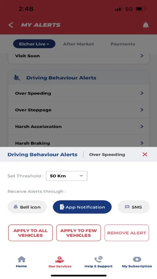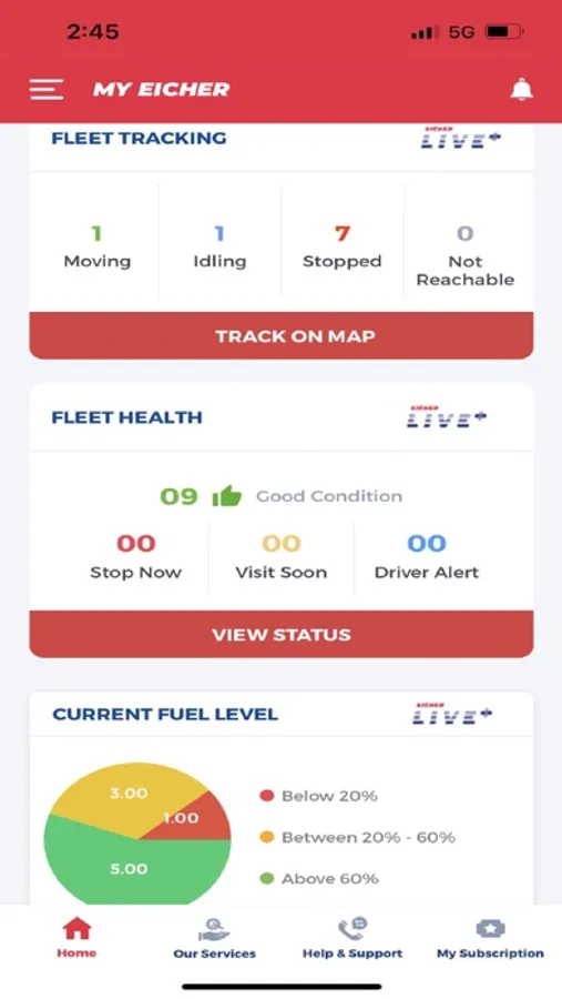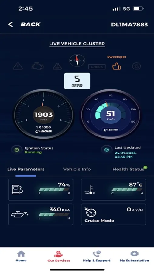 • Eicher Live+ - Includes Driving behavior alerts, Fuel alerts, Geo-fence alerts, Predictive Uptime alerts