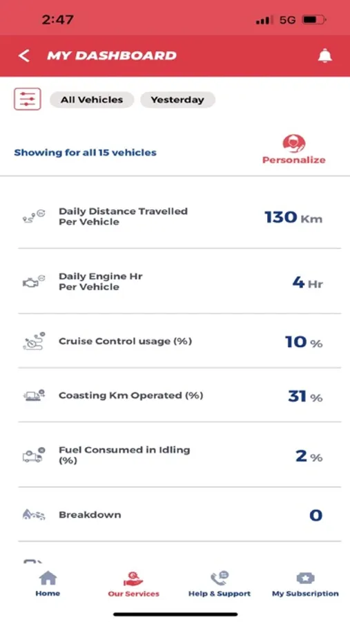 • Gain insights across 45 different parameters for vehicle utilization, fuel, safety and driving behavior