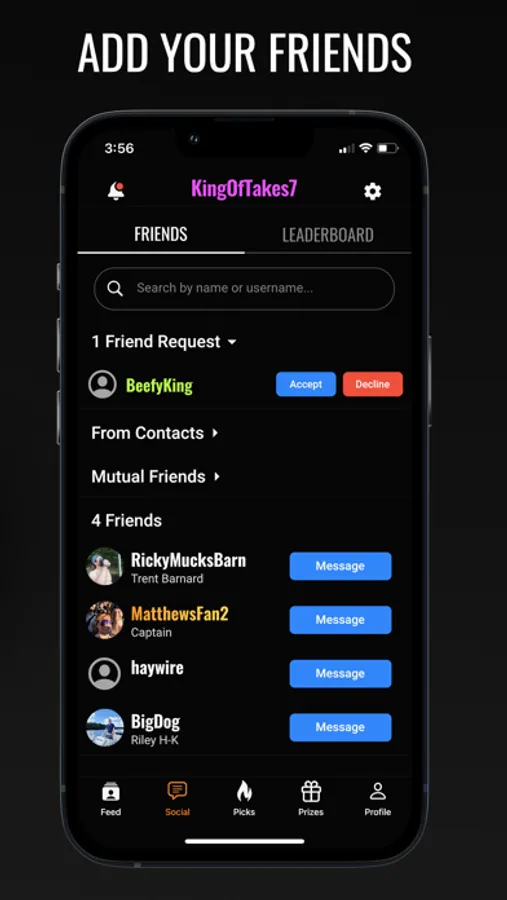 - Friends - Add your friends to keep track of their streak, record, win percentage, takes, picks, and more!