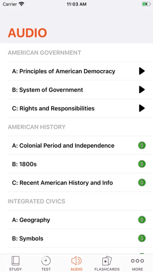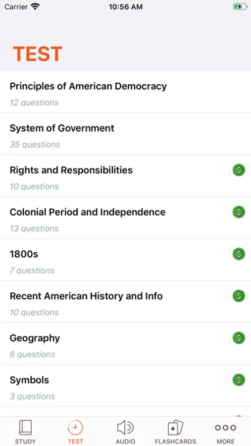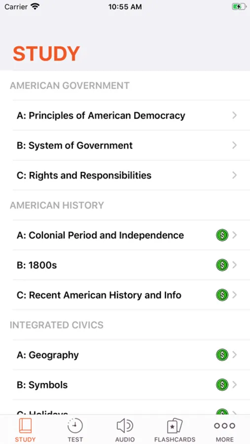 The USA Citizen Test App is the complete guide for the United States naturalization test. The civics questions and answers are presented in text (documents), audio, flashcards and timed exam formats. Study materials include 3 different versions of study guides from 2008 Civics Test (current version), 65/20 Special Consideration (for seniors) and the 2020 Civics Test (discontinued).