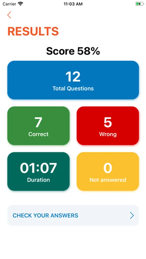 TEST: See if you’re ready by taking timed exams that include image and text hints. Review your answers and keep track of all scores.