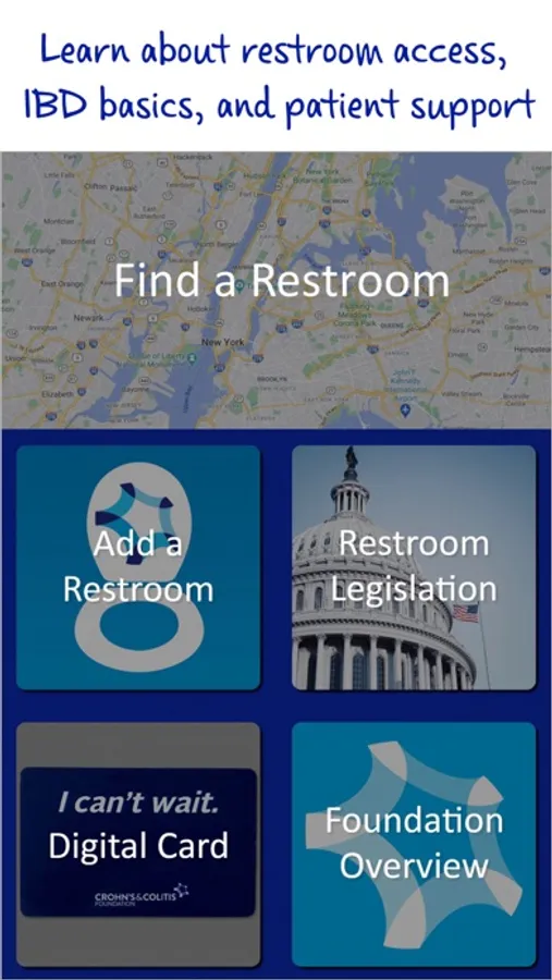 This app also provides education and resources for those looking for IBD support and information, and information on the status of restroom access legislation in each state.