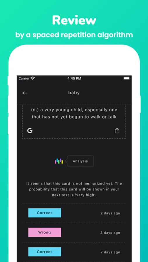 -And this scientific algorithm reminds you at the proper time to review words so that you will never forget.