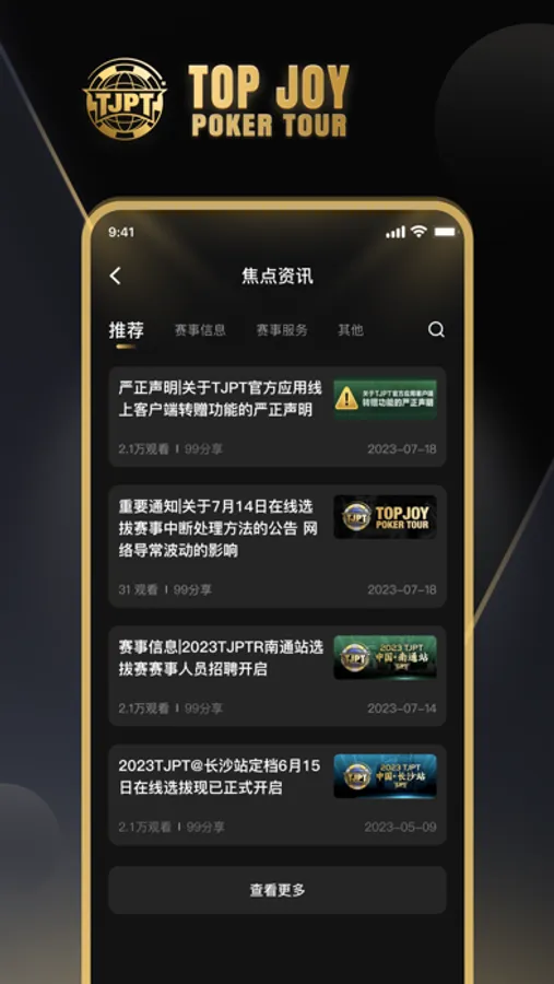 TJPT是一款集赛事资讯、赛事服务、酒店订房等为一体的综合型服务类软件。