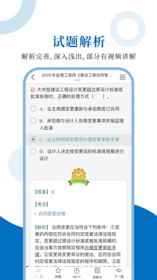 专为监理工程师考试精心准备的考试配套题库,每一道试题都有答案解析,为考试提供了充分的复习准备,可随时随地学习练习,支持手机、平板多端同时使用。