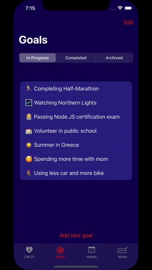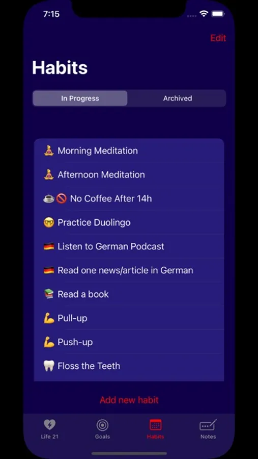 Manage your goals, track your habits and write your notes with privacy and freedom. All the data is stored locally on your iPhone and there is no tracking, monitoring or learning from your usage. No gamification and no reward-enabling system. It's all about you and yourself.