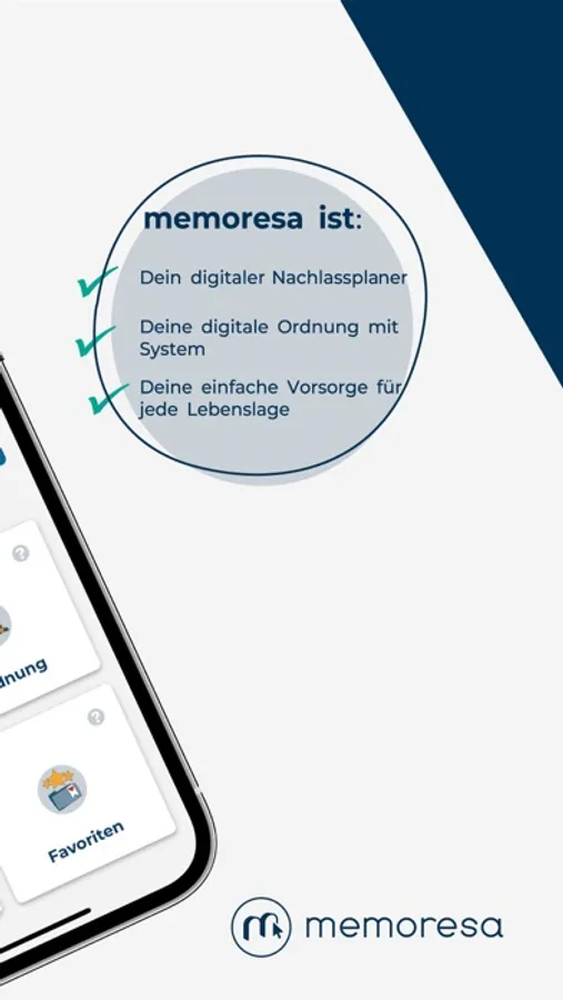 memoresa ist dein digitaler Begleiter für jede Lebenslage. Hinterlege und organisiere deine wichtigsten Unterlagen an nur einem einzigen Ort und hab’ sie immer und überall griffbereit. Angefangen bei deinem Personalausweis über deinen Handy-, Miet- und Arbeitsvertrag bis hin zu Versicherungsdokumenten und den Unterlagen für deine nächsten Reise: Mit der memoresa-App schaffst du Ordnung im digital-analogen Chaos und hast alles Wichtige immer in der Hosentasche.
