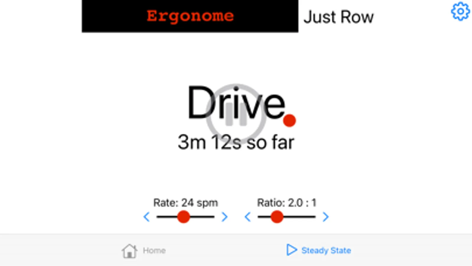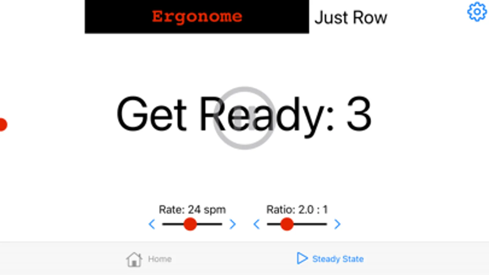 This is the "Steady State" page of the popular Ergonome indoor rower training aid. Set up the desired stroke rate and ratio and the app will keep you to it with visual and audio cues for catch and finish. Change the rate and ratio mid-session. Use it for long aerobic and short anaerobic work, and watch your fitness improve. Download the fully featured Ergonome app to use, create and save structured sessions - pyramids, staircases, castles and so on - and watch it improve even more.