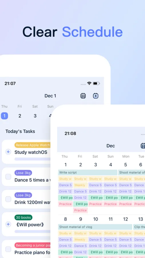7). Task Timing. record the time you contribute to each goal every day, so that you can look back and organize, and adjust the direction in time!