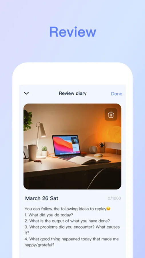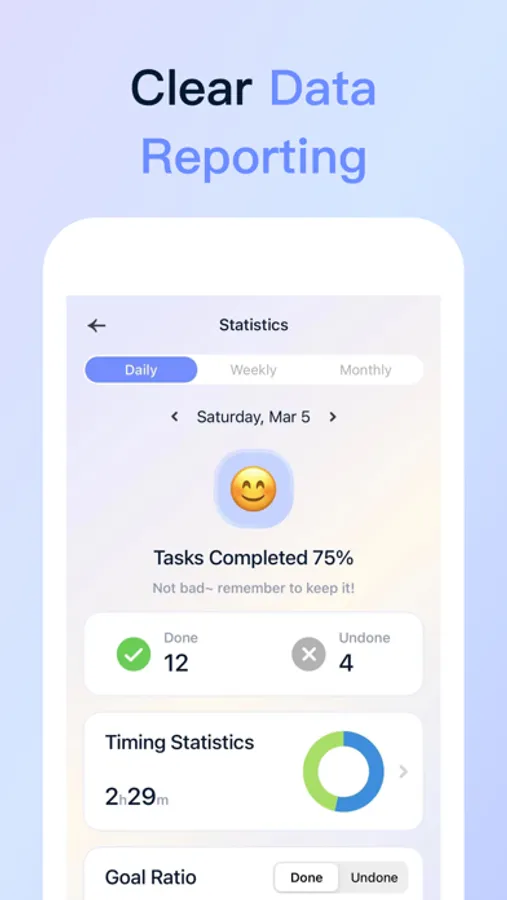 6). Daily data. Check your daily accomplishment. What goals have you worked hard for in the day? Come and take a look! You can also share it with your friends.