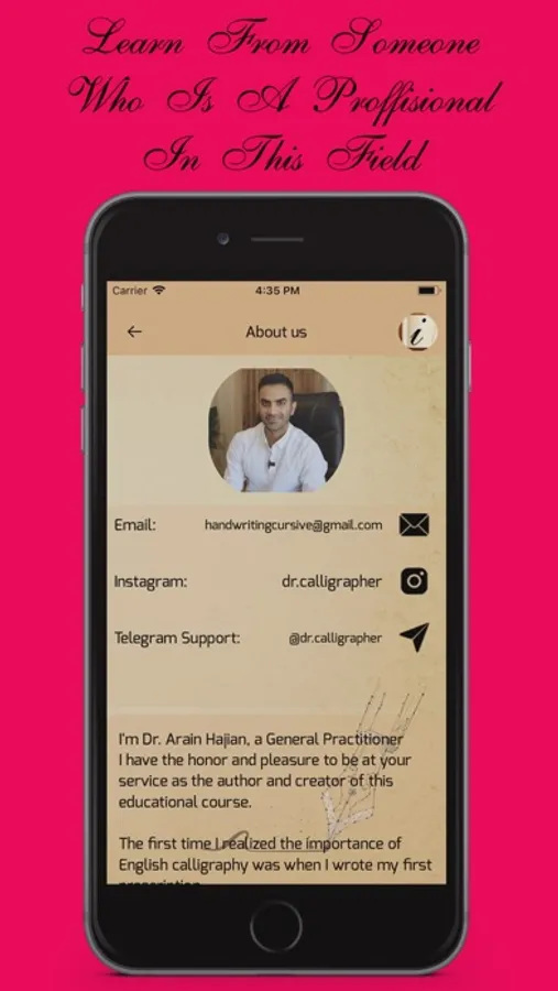 I'm Dr. Arain Hajian, a General Practitioner. I have the honor and pleasure to be at your service as the author and creator of this educational course. The first time I realized the importance of English calligraphy was when I wrote my first prescription. Looking at it, I realized how much that prescription could reflect the performance of a doctor. In addition to the content of a prescription that is not hazy to anyone, how much does the appearance of a prescription indicate the patient's discipline, work prestige, even literacy and trust in a doctor. So I started looking for the best books and professors in the field of English calligraphy.
