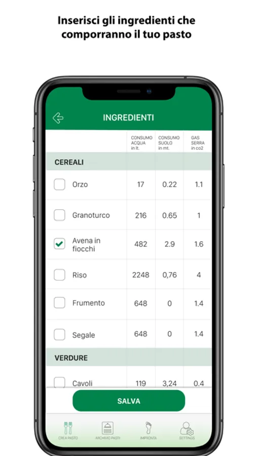 This app uses data on the water, ecological and climatic footprint of the main foods, making it known how many liters of water and square meters of land are used, as well as how many kilos of Co2 Equivalent are produced to produce 1kg of the selected food.