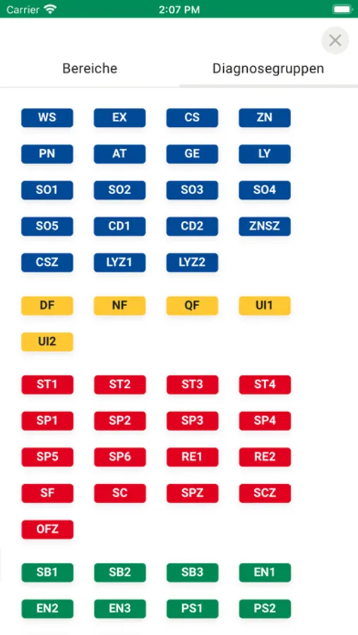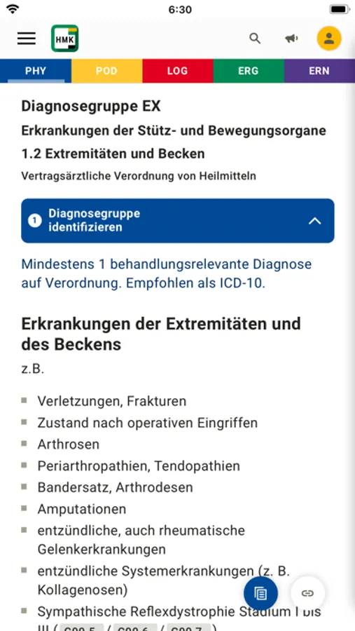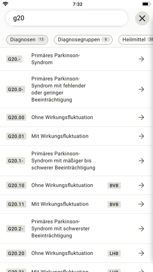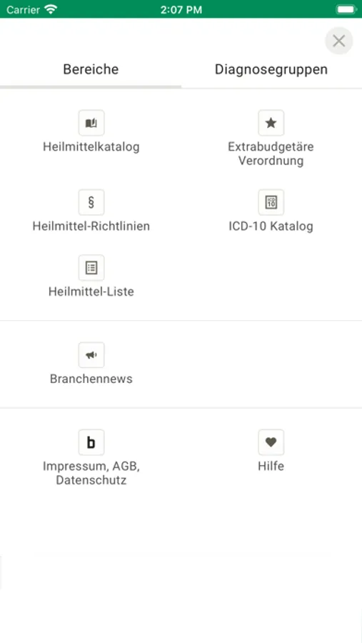 Alle Diagnosegruppen für vertragsärztliche und zahnärztliche Heilmittelverordnungen werden angezeigt.