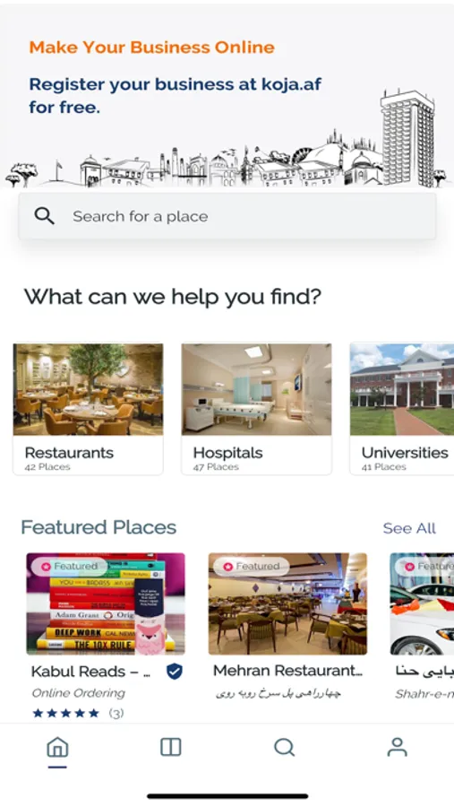 Koja.af helps you find amazing places including businesses, entertainment, parks, hospitals, etc. with its most accurate information.