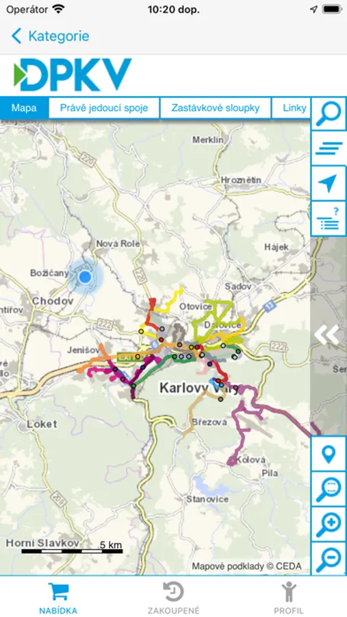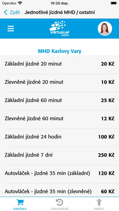 Získej zdarma virtuální Karlovarskou kartu do mobilu bez nutnosti osobní návštěvy. Nakup si online časový kupon, jízdenku v MHD, parkovací lístek nebo povolenku do LÚ. Můžeš si vyhledat své autobusové spojení a buď online v dopravě po Varech s dopravním portálem DPKV.