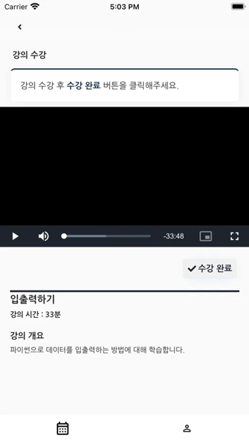 - 강의를 수강하고 나의 수강 이력을 체크할 수 있습니다.