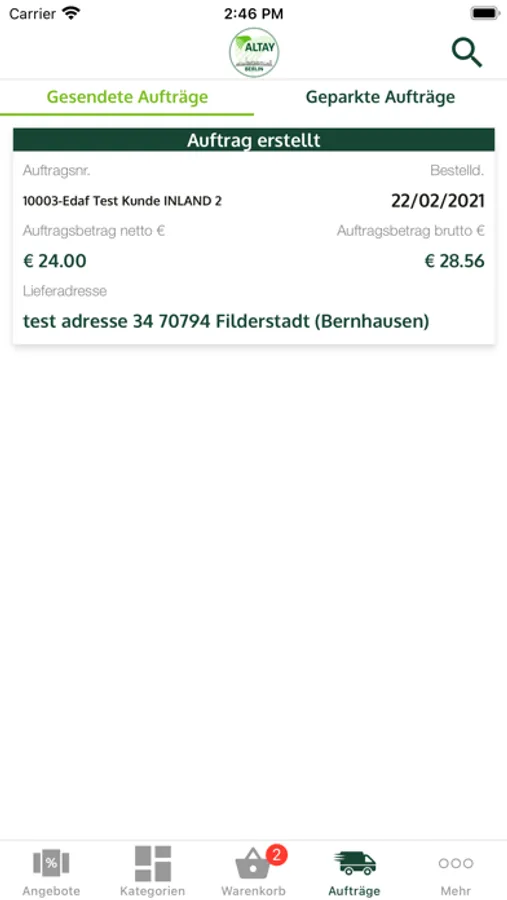 Altay Berlin iOS-App bietet Kunden die Möglichkeit, Ihre Auftrage online zu erfassen. Die Kunden können auch Ihre Offene Posten ansehen.