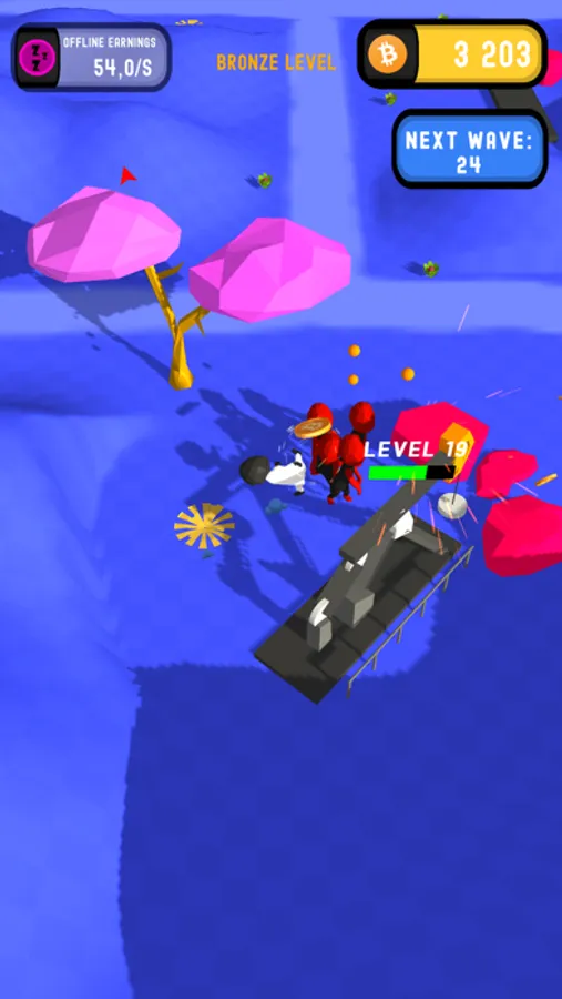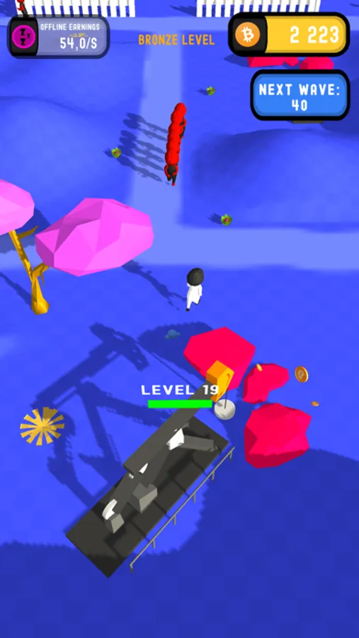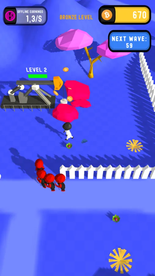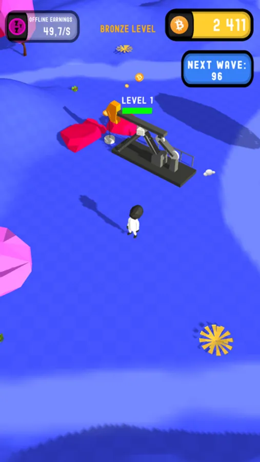 Buy bitcoin mining machines, upgrade the mining speed, and beware of the enemy, they destroy your machines. Be quick and kick or hit them all, before they ruin your earnings.