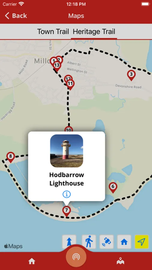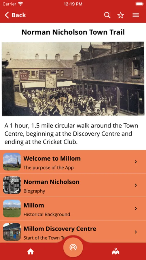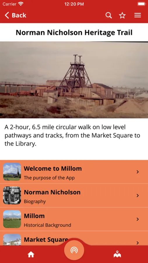 The app is Bluetooth Beacon and GPS enabled. This is to show you relevant content based on your location along the trail and immediate area.