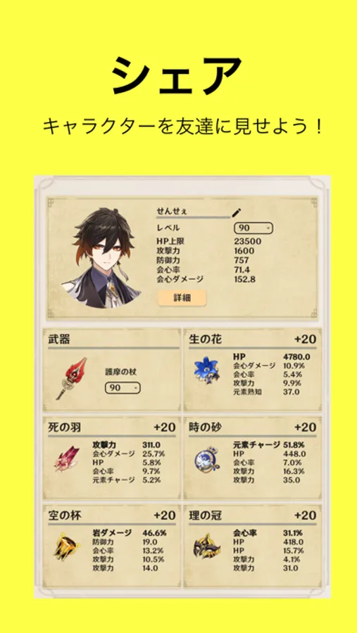 登録した聖遺物を使って友達に自分のキャラクターを自慢しちゃおう!