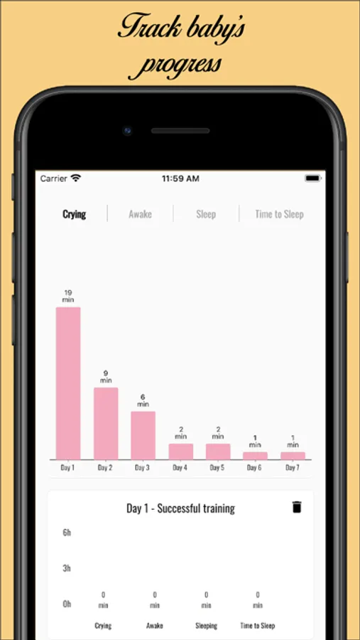 The graphs show you the progress of the method, specially you will notice how crying time and time to sleep is reducing for your baby as you use the app