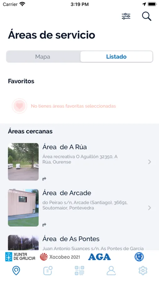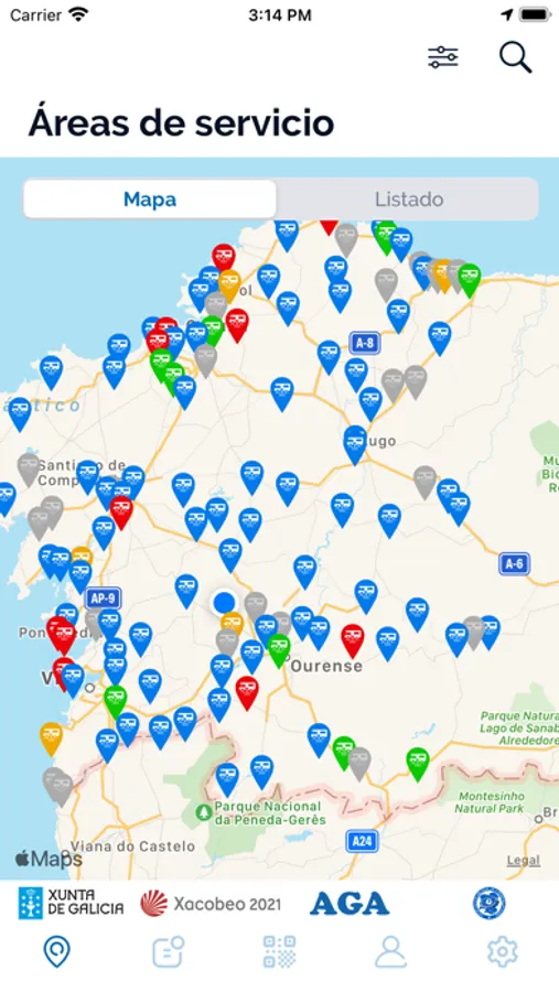 Está aplicación te permitirá conocer todas las áreas todos los lugares donde poder estacionar la autocaravana, e incluso pernoctar, en Galicia, con información sobre su localización y los servicios disponibles. La aplicación permite buscar las áreas de una zona, localizarlas en el mapa y visualizarlas en listado.