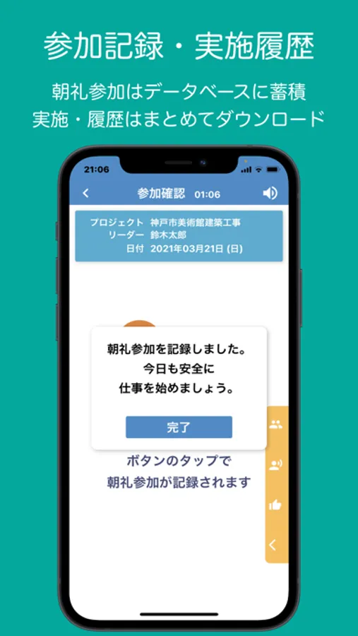 朝礼の最後に参加登録を行うことで、参加記録がサーバに記録されます。
