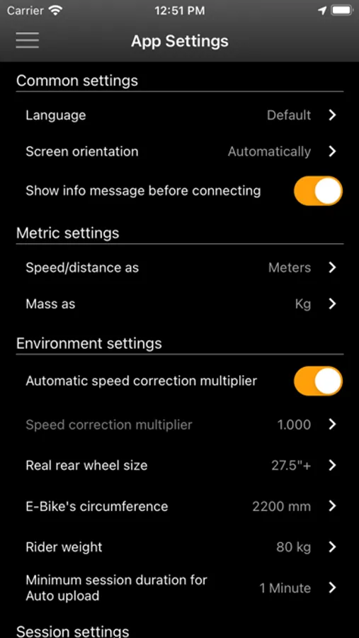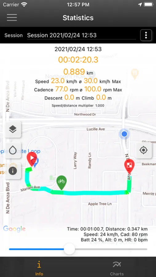 This App shows the real Speed/Distance of the bike according to correction factors.