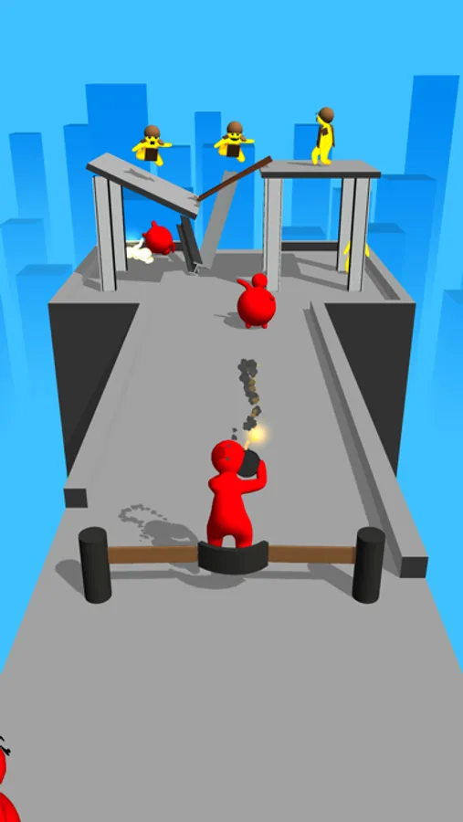 Pull the slingshot back and release it to throw your characters at the opponents.