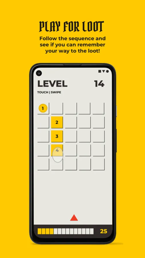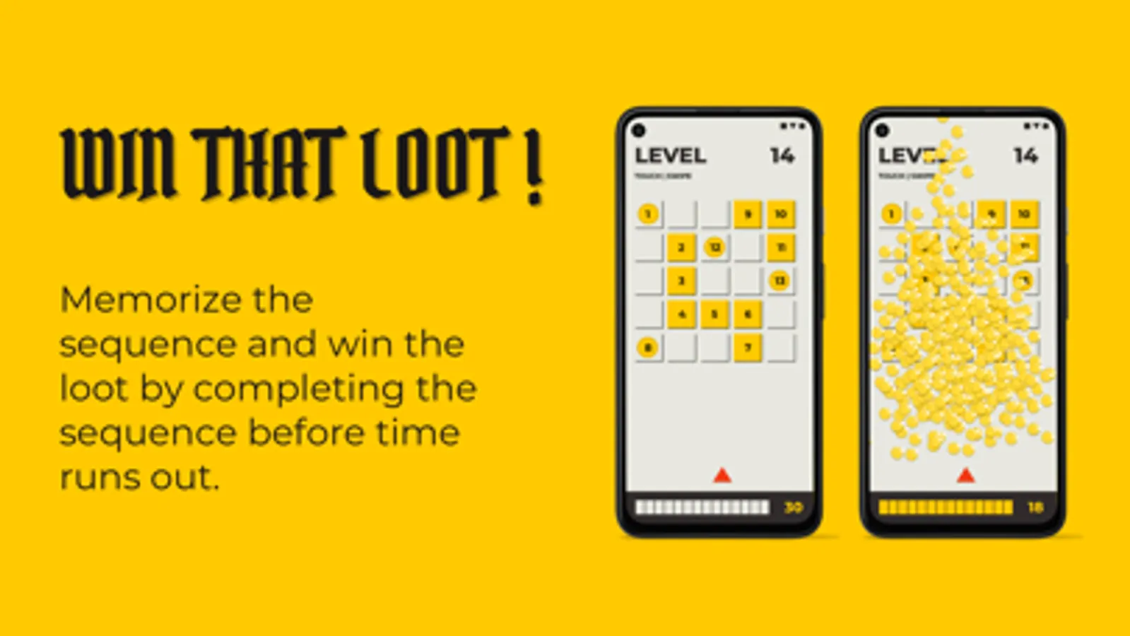 Loot is memory game. A sequence of touches and swipes is shown to you and then you have a limited time to reproduce the sequence. As you complete more levels, the sequences get more difficult. Can you make the leaderboard and get that loot?
