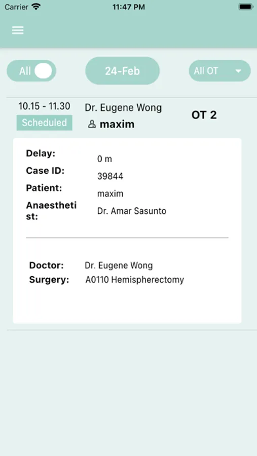 Go as far ahead to see what surgeries have been lined up, time of surgery, surgical notes and other details.