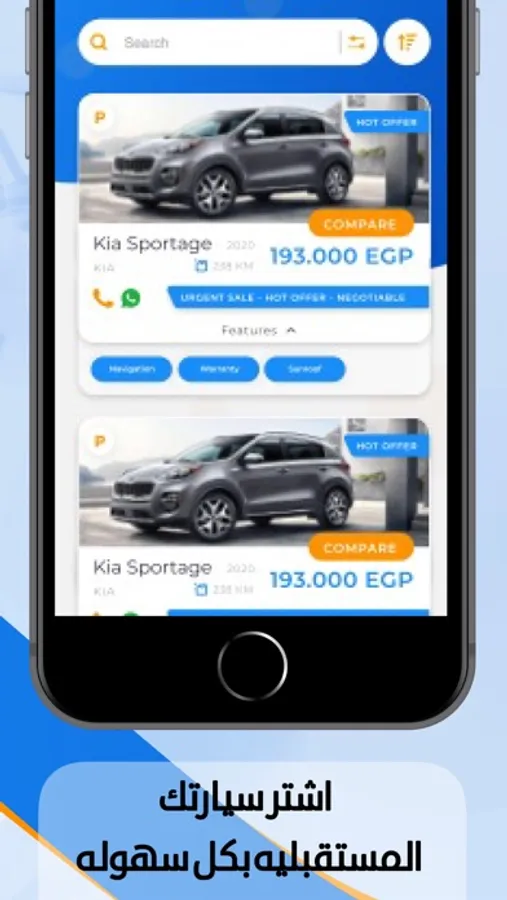 أول تطبيق الكتروني يقدم خدمات متكاملة بداية من عملية الشراء سواء كان جديد أو مستعمل التطبيق يوفر أكثر من 400 معرض سيارات ومئات البائعين يمكنك من خلاله شراء السياراة بأفضل المواصفات المناسبة لك من خلال تصفية النتائج على حسب السعر واللون والموديل وبلد التصنيع والماركة وحالة السيارة.