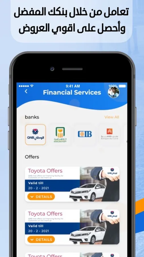 يمكنك أيضاً الحصول على عروض التمويل المختلفة بأنظمة سداد مريحة من أكبر البنوك وأفضل شركات التمويل أيضاً يمكنك الحصول على عروض التأمين المتميزة والحصرية من مختلف شركات التأمين العالمية والمحلية.