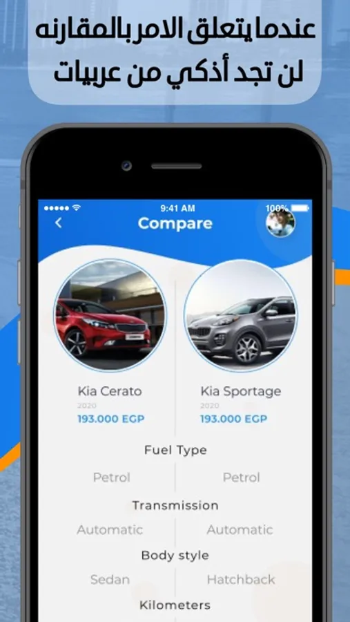 من خلال تطبيق عربيات يمكنك إيجاد جميع أنواع العربيات الجديدة والمستعملة بمواصفات وصور كافية تساعدك على المقارنة وتلبية احتياجاتك بسهولة مع إمكانية دفع عربون وحجز العربية اونلاين بأسهل وأمن الإجراءات.