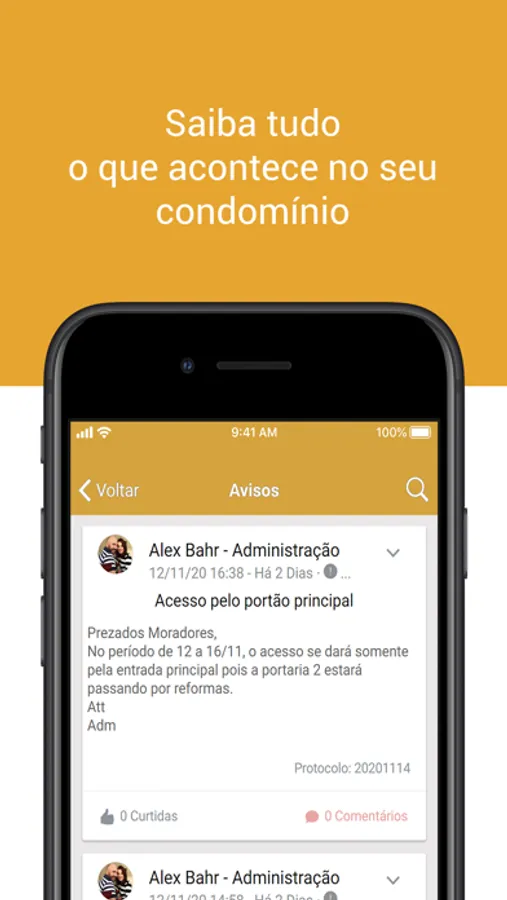 Receba notificações em seu celular de tudo que acontece no seu condomínio!