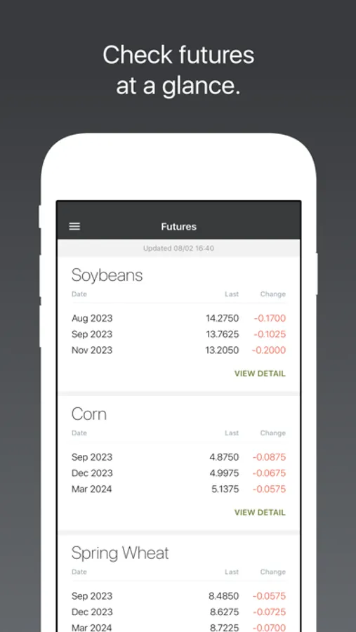 Futures: See Grains, Feed, Livestock, and Ethanol futures listed in order of your preference