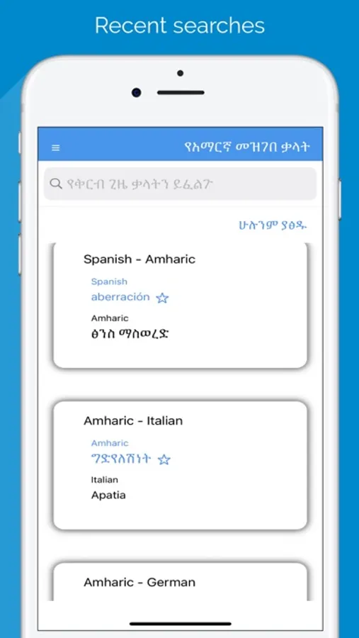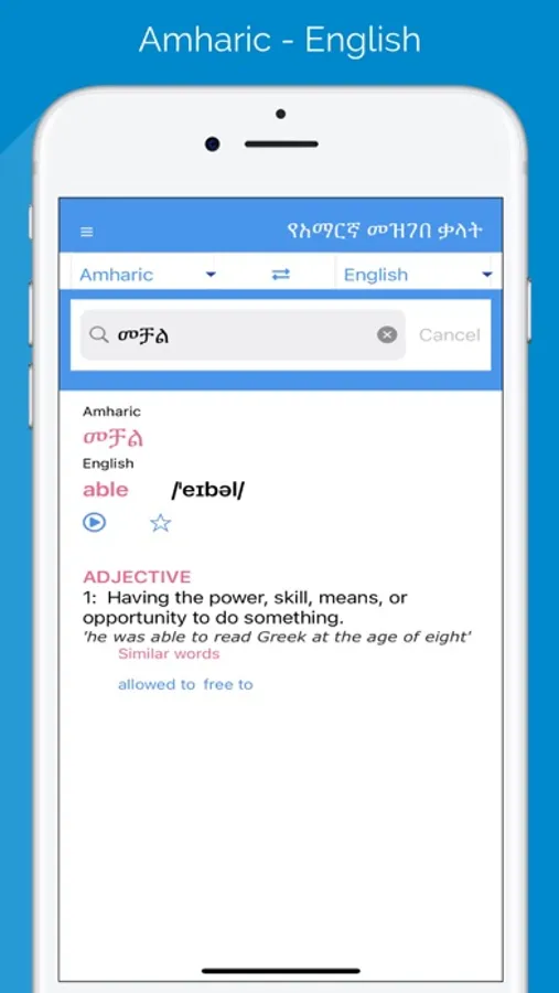 What is the Amharic Dictionary app? It's an indispensable tool for learning or translating anything in one of Africa’s most widely spoken and important languages. Add some words to your vocabulary with our all-in-one Amharic dictionary app.