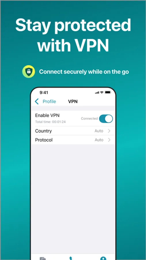 - Enhance your online privacy and protect your data on unsecured networks with our in-app VPN that works throughout your device.