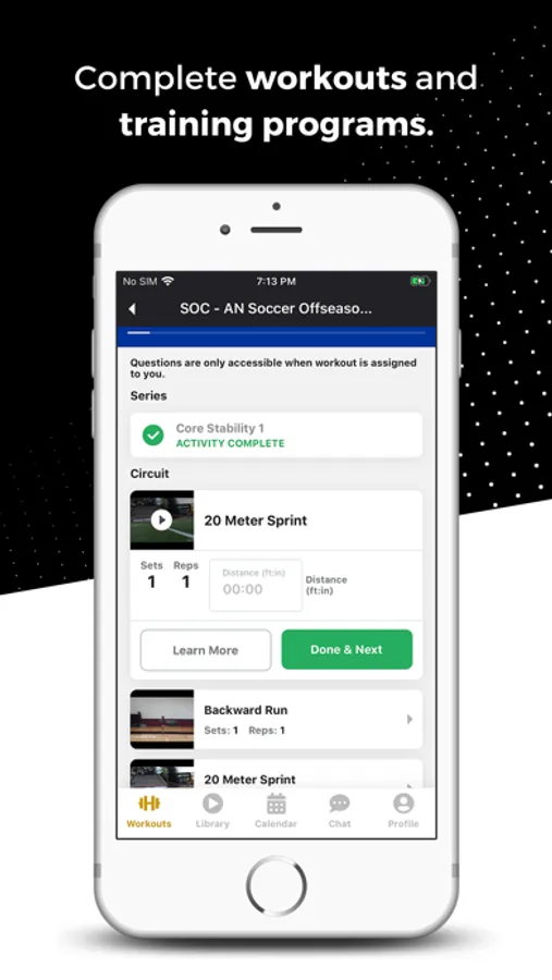 From grassroots to elite players, take your game to the next level by accessing the complete virtual library of training videos created by our dedicated team of former professional and collegiate players. Follow along with our tailored workouts or create your own.